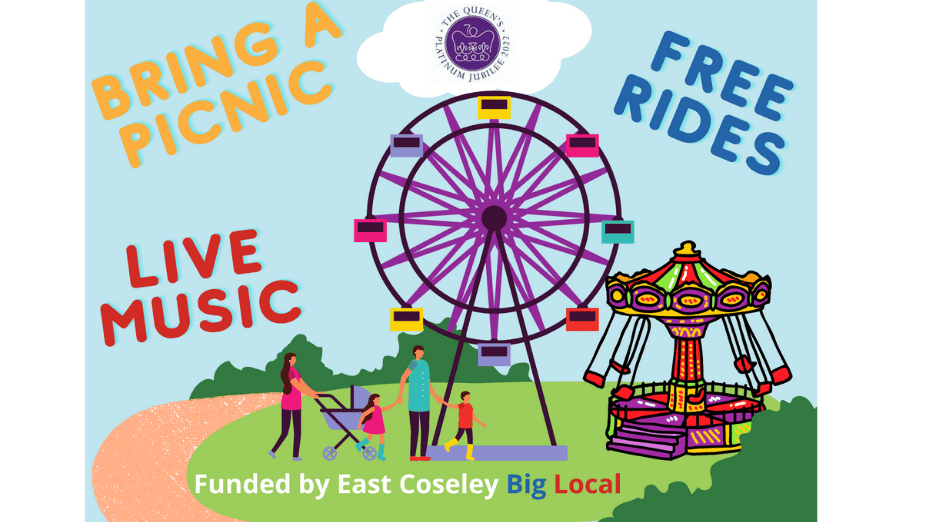 Wednesday June 1st 2022, Silver Jubilee Park, Mason Street, Coseley Queen’s Platinum Jubilee ‘Picnic in the Park’ 12-4pm Free traditional rides for all which includes a Ferris Wheel and a Helter Skelter to suit adults and children, and two children’s …