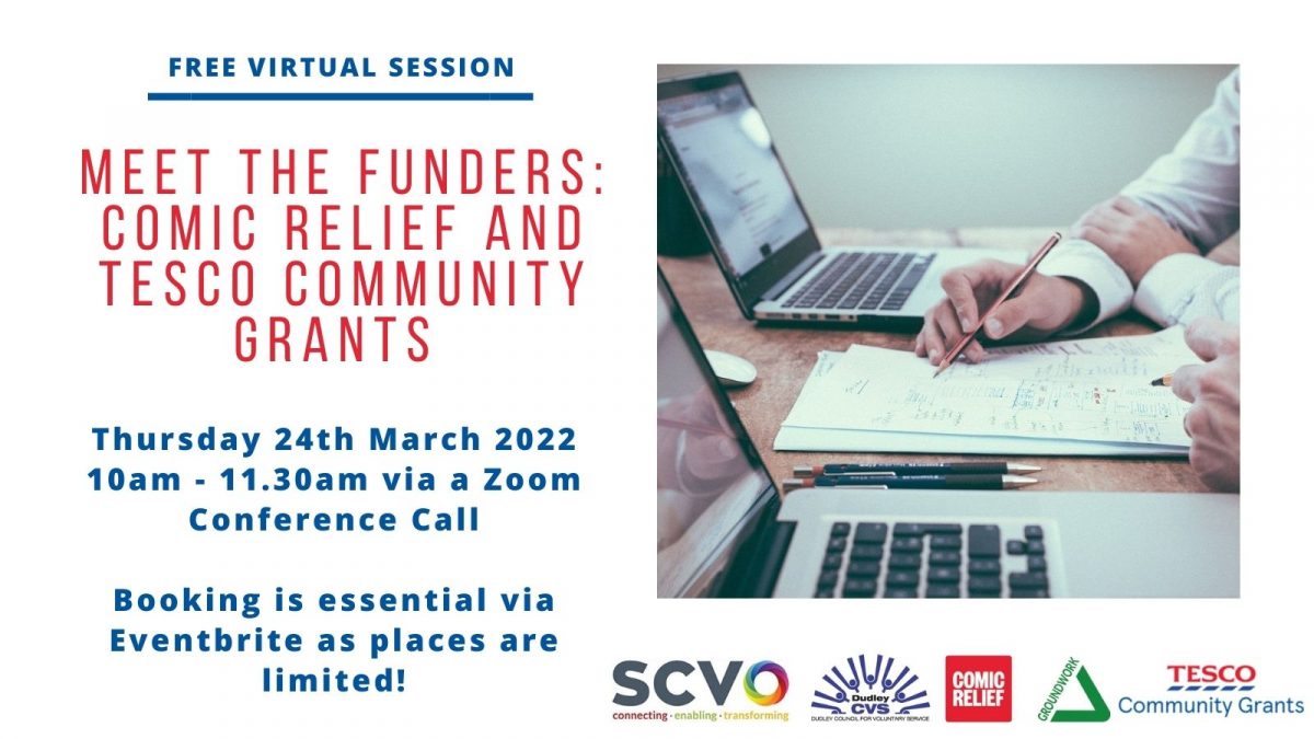 SCVO and Dudley CVS bring you a virtual Meet the Funder session with Groundwork West Midlands. The session will be held on Thursday 24 March 2022, 10am-11.30am. Groundwork West Midlands manages Comic Relief and Tesco Community Grants locally. This virtual …