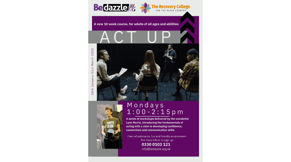 Bedazzle are delighted to share an opportunity to join their “Act Up” course starting 20th January in Dudley Town Centre. Join them for an hour each week, as they explore the fundamentals of acting, led and facilitated by Lynn Morris. …